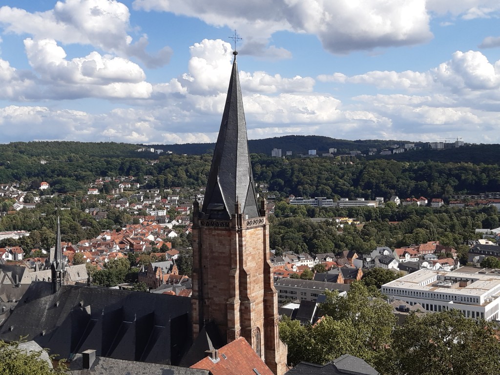 Von der lutherischen Kirche aus muss man eine steile Steintreppe hinaufsteigen um vor das Landgrafenschloss zu gelangen. Aber die Quälerei lohnt sich, denn man wird mit einem tollen Blick über Marburg belohnt.